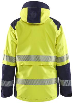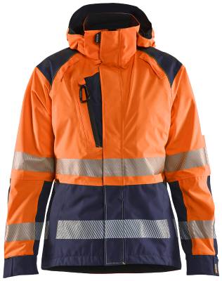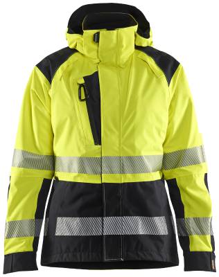 Skaljacka i varselklass 2 som gör dig synbar när det behövs som mest. Jackan har rymlig och skön dampassform med ryggpanel i stretch. Är vind- och vattentät med tejpade sömmar. Har förstärkningar i front och på ärmar och huvan är avtagbar samt anpassad för hjälmar och hörselkåpor. Öppnas med tvåvägslås och har ventilation i ryggen. Finns även som herrmodell 4435.