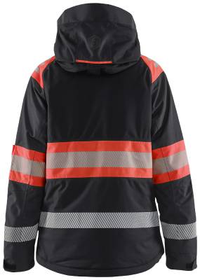 Mycket slitstark vinterjacka i klass 1-varsel med dampassform. Jackan med quiltfoder är vind- och vattentät med tejpade sömmar. Jackan har förstärkningar i front och på ärmar och har en rymlig skön passform med ryggpanel i stretch för extra komfort. Huvan är avtagbar och anpassad för hjälmar och hörselkåpor. Öppnas med tvåvägslås. Finns även som herrmodell 4480.