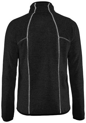 Stickad jacka med dragkedjor i kontrastfärg. Jackan har elastiskt band i ärmavslut och nederkant, förlängt ryggslut och fleecefodrad krage. Framfickorna är försedda med blixtlås.
