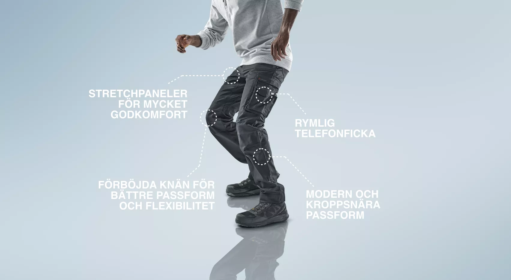 Omnio arbetsbyxor har alla basfunktioner som behövs under din arbetsdag. Du hittar arbetsbyxor både med och utan stretch. Allt för att du ska kunna välja vad som passar dig bäst.