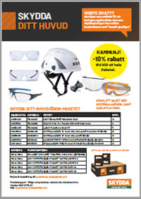 Kampanj som pågår just nu - 10% rabatt vid köp av helt paket med skyddsglasögon, hjälm och visir.