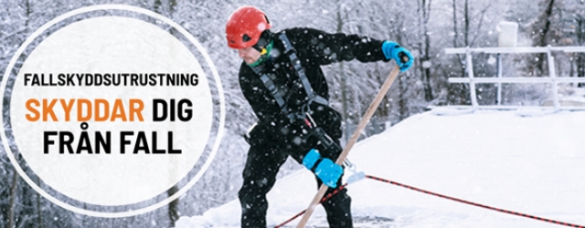 Vi rekommenderar följande fallskydd när man skottar tak: