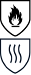 EN 407Skyddshandskar mot värme. Denna standarden specificerar krav och provningsmetoder för skyddshandskar som ska skydda mot termiska risker som hetta och /eller brand. Det finns 2 pictogram med tydliga skillnader mellan när handsken skyddar mot flamma och när den inte skyddar mot flamma. De siffror som anges bredvid eller under piktogrammet anger handskarnas prestanda för varje test i standarden. Ju högre tal desto bättre prestandanivå. X anger att skyddsnivån inte testats. 1. Brandegenskaper hos materialetMan mäter hur lång tid materialet glöder, alternativt brinner, efter att det antänts av en gaslåga. Om detta test har genomförts av handsken visas detta pictogram: