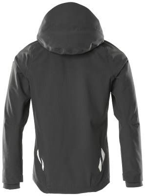 Vind- och vattentät jacka med avtagbar, fodrad huva och justerbara elastiska snören. Blixtlås och invändig vindflik för att stänga ute vinden, samt ribbstickning vid handlederna och resårjustering i nederkanten för att hålla ute kylan. Extra synlig med reflexeffekter.