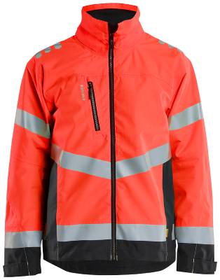 Utformad för att ge maximalt skydd mot vind, väta och kyla, erbjuder denna jacka från Blåkläder hög komfort och funktionalitet. Med justerbar nederkant med dragsko och invändiga muddar med tumgrepp, säkerställer den en anpassad passform och extra skydd. Det vind- och vattentäta materialet med tejpade sömmar och andasfunktion håller dig torr och bekväm under alla förhållanden.