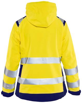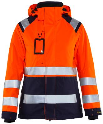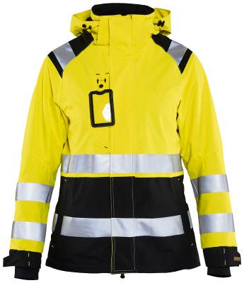Dampassform. Förböjda ärmar. Vind- och vattentätt material med andasfunktion. Tejpade sömmar. Meshfoder. Fleecefodrad krage. Avtagbar, justerbar luva. Avtagbar ID-kortsficka. Dolt kraftigt tvåvägsblixtlås i plast. Invändig slå med fleece. Bröstficka med blixtlås. Dokumentficka i front. Insticksfickor med blixtlås och fleecefoder. Innerficka med kardborreknäppning, Innerficka i mesh. Förlängt ryggslut, Justerbar i nederkant med dragsko. Justerbara ärmavslut med kardborre, Invändig mudd i ärmavslut med tumgrepp. 50 mm breda transferreflexer.