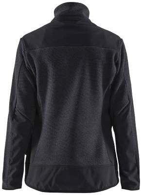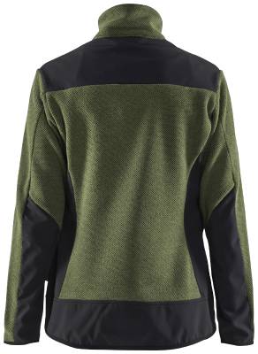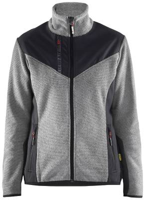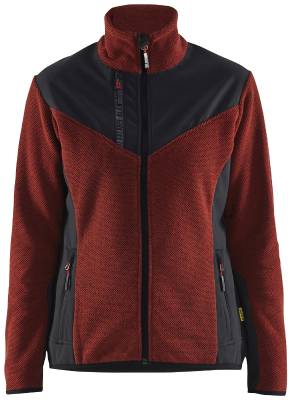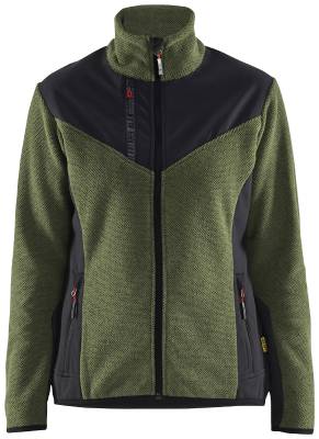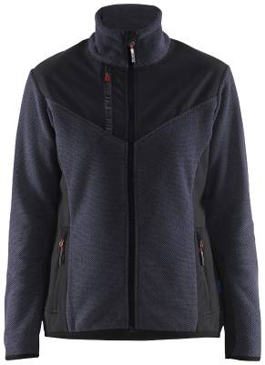 Stickad jacka i dampassform med krage i fleecekvalitet. Denna jacka med tvåvägsblixtlås i fronten har ett unikt material som bäst kan beskrivas som tredimensionell fleece. Det borstade materialet ger jackan dess utseende med 3D-mönster, stretchig och smidig bekvämlighet samt värme när det behövs som mest. Jackan är förstärkt med softshellmaterial på armar, axlar och ryggslut för ökad slitstyrka, och då det inte finns någon softshell i armhålorna är ventilationen förbättrad. Har utmärkta profileringsytor, men passar lika bra i arbetet som på fritiden. Finns även som herrmodell 5942.