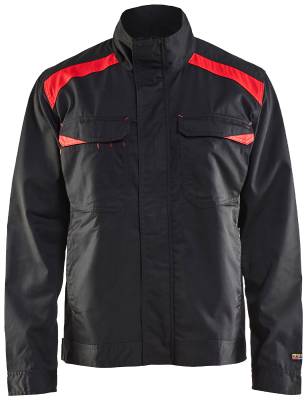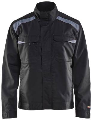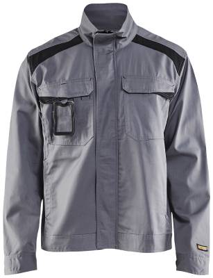 Jacka med detaljer och tränsar i kontrastfärg. Två bälgade bröstfickor med lock varav en med tvådelad pennficka försedd med ripsband för extra verktyg. Två insticksfickor. Bälgveck i rygg för ökad rörlighet. Reglerbara ärmar och nederkant. Frontslå med tryckknappar som döljer blixtlås. Två innerfickor, invändig mobilficka.