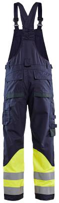 Hängselbyxa i inherent flamskyddat material, vilket innebär att flamskyddet är inbyggt i fiberns struktur. I de partier plagget är fodrat är byxan godkänd i den högre ljusbågeklassningen APC 2. Byxan är mjuk och följsam där de utvändiga knäskyddsfickorna är förstärkta med ett material av Cordura/Kevlar/Protal.