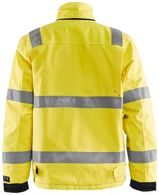 Multinorm vinterjacka, designad för att synas från alla håll. Kortare fram för maximal rörelsefrihet och förlängt ryggslut. Bröstficka. ID-kortsficka. Innerficka med invändig telefonficka. Dolt blixtlås i front. Mörkt tyg på smutsutsatta ställen. Tejpade sömmar. Mörkt tyg på smutsutsatta ställen. Alla fållar är nerfällda för att förebygga att gnistor och svetsningsbiprodukter kommer in. 50 mm reflexer.