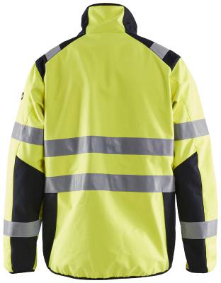 Metall- och polyesterfri softshelljacka i varsel som är inherent flamskyddad, vilket innebär att flamskyddet är inbyggt i fibrernas struktur.