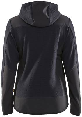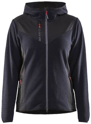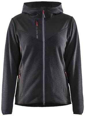 Stickad jacka i dampassform med luva i snygg design och oslagbart bekväm fleecekvalitet.