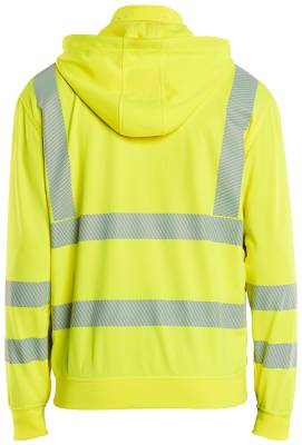 Denna sweatshirt från Blåkläder är idealisk för yrkesverksamma som behöver en kombination av synlighet, komfort och praktiska funktioner. Med en hög krage med blixtlås, avtagbar luva och reflexer på bål, ärmar och axlar, är den utformad för att ge både säkerhet och flexibilitet i olika arbetsmiljöer.