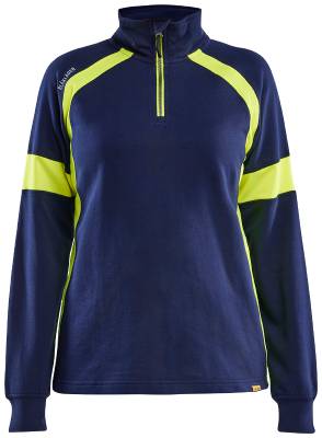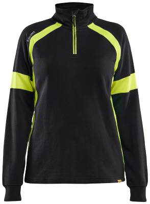 Denna sweatshirt från Blåkläder är utformad för yrkesverksamma som behöver både komfort och synlighet i sitt arbete. Med förlängt ryggslut och paneler i varselmaterial, erbjuder den ökad synbarhet och en bekväm passform. Den höga kragen med blixtlås och mudd i ärmavslut ger extra skydd och värme.