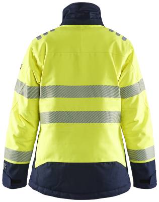 Den ultimata, flamskyddade vinterjackan med dampassform från Blåkläder. Är det perfekta valet för dig som jobbar i utsatta flammiljöer, och dessutom så skyddar den dig på ett ohotat sätt från kyla, väta och vind med sitt varma foder, laminerade tyg och tejpade sömmar. Detta helt metallfria plagg har segmenterade transferreflexer och reflexdetaljer på axlarna för synbarhet från alla håll, skön fleece inuti fickorna samt tvåvägsdragkedja i plast. Med denna olje-, smuts- och vattenavvisande jacka suddas väderutmaningarna ut, så ta dig an vilket jobb som helst. Den hjälmanpassade huvan 2167 säljes separat. Jackan finns även i herrmodell 4517.